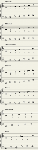 mollskalaer_a-moll_a-harmonisk-moll_a-melodisk-moll_a-dorisk_a-pentaton_a-blues.png
