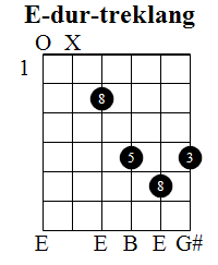 Hvis du tar E som hovedtone, kan du spille de seks første overtonene ved (a-formen av) en E-durakkord i syvende bånd: 079997. Det gir hovedtonen pluss de fem første overtonene.